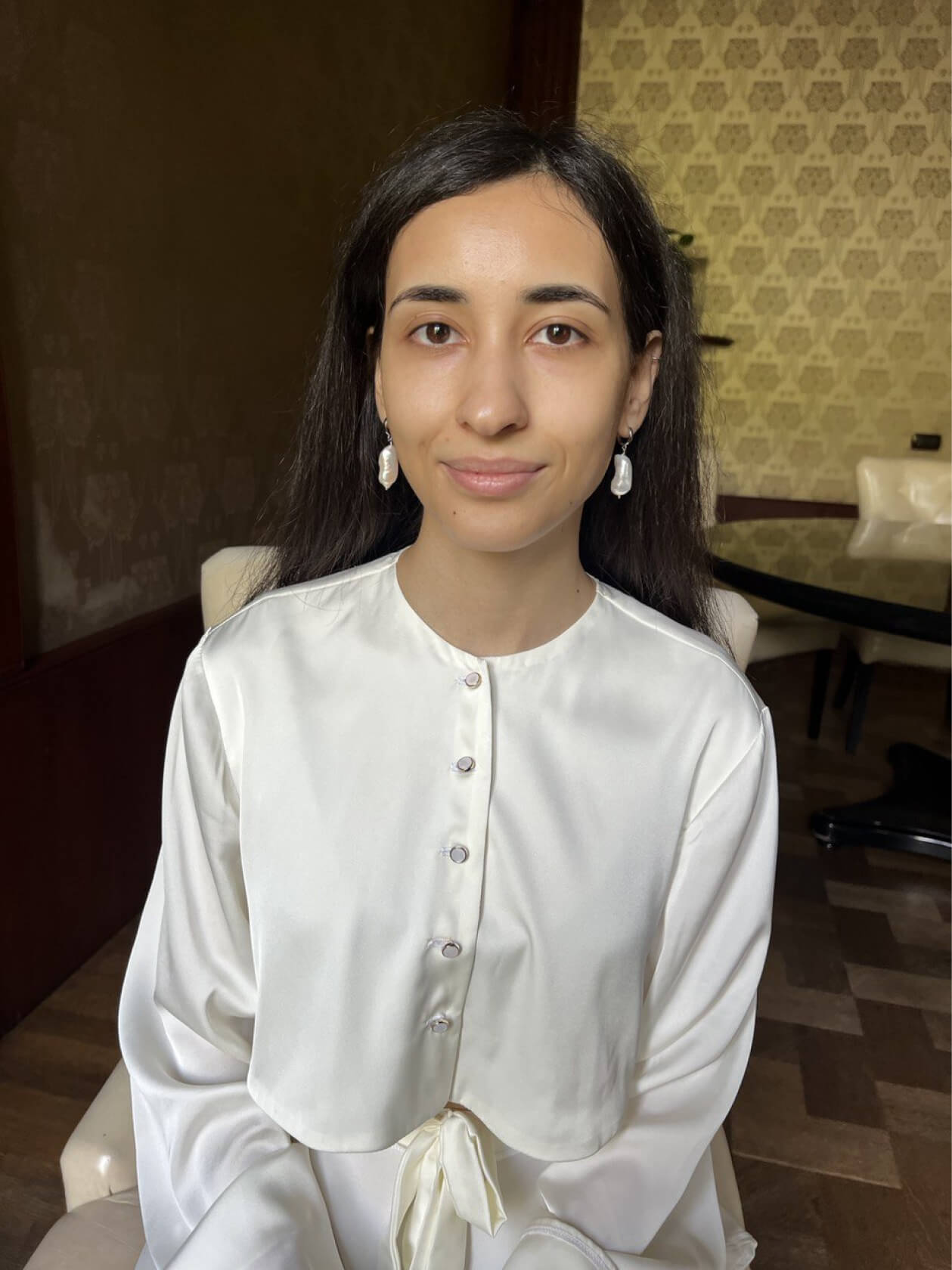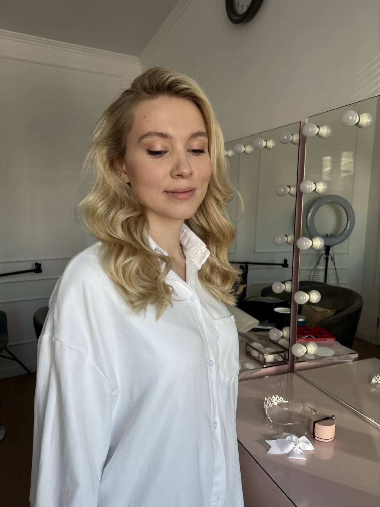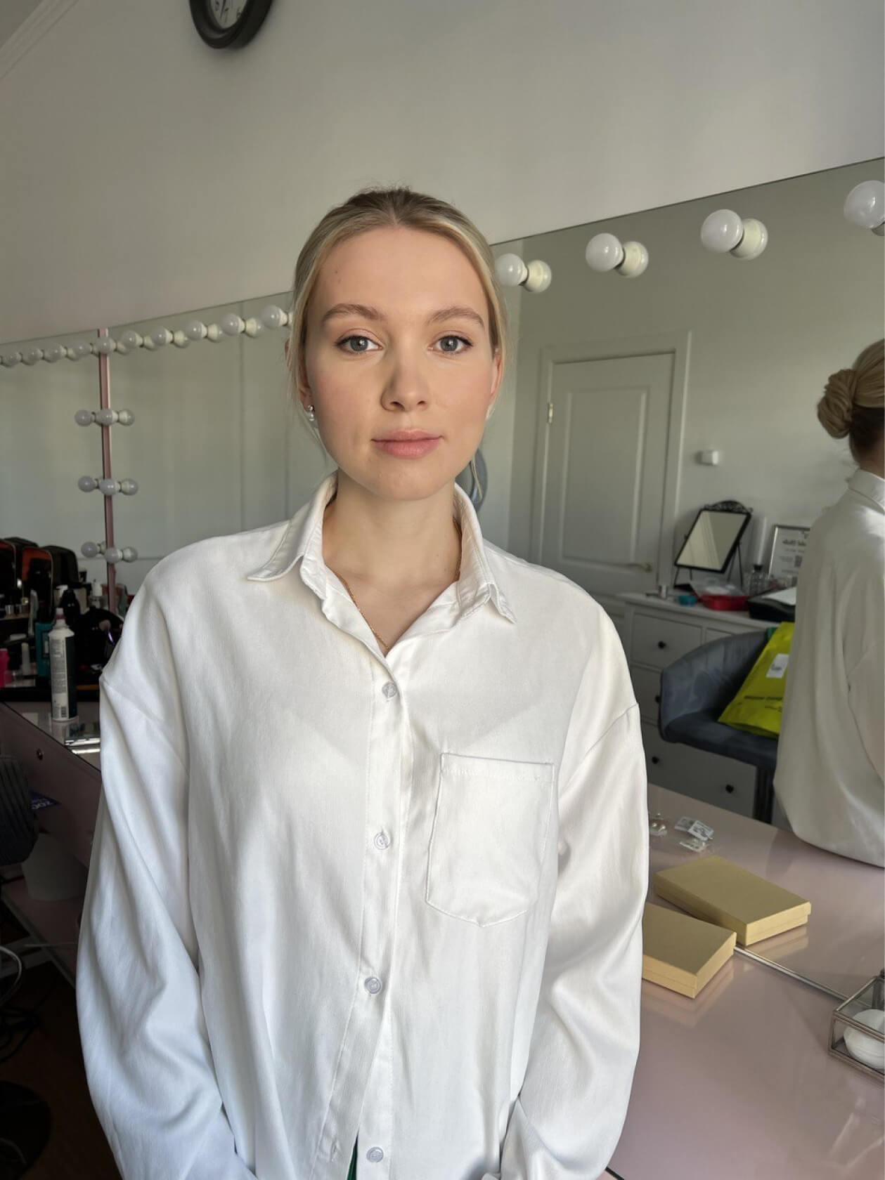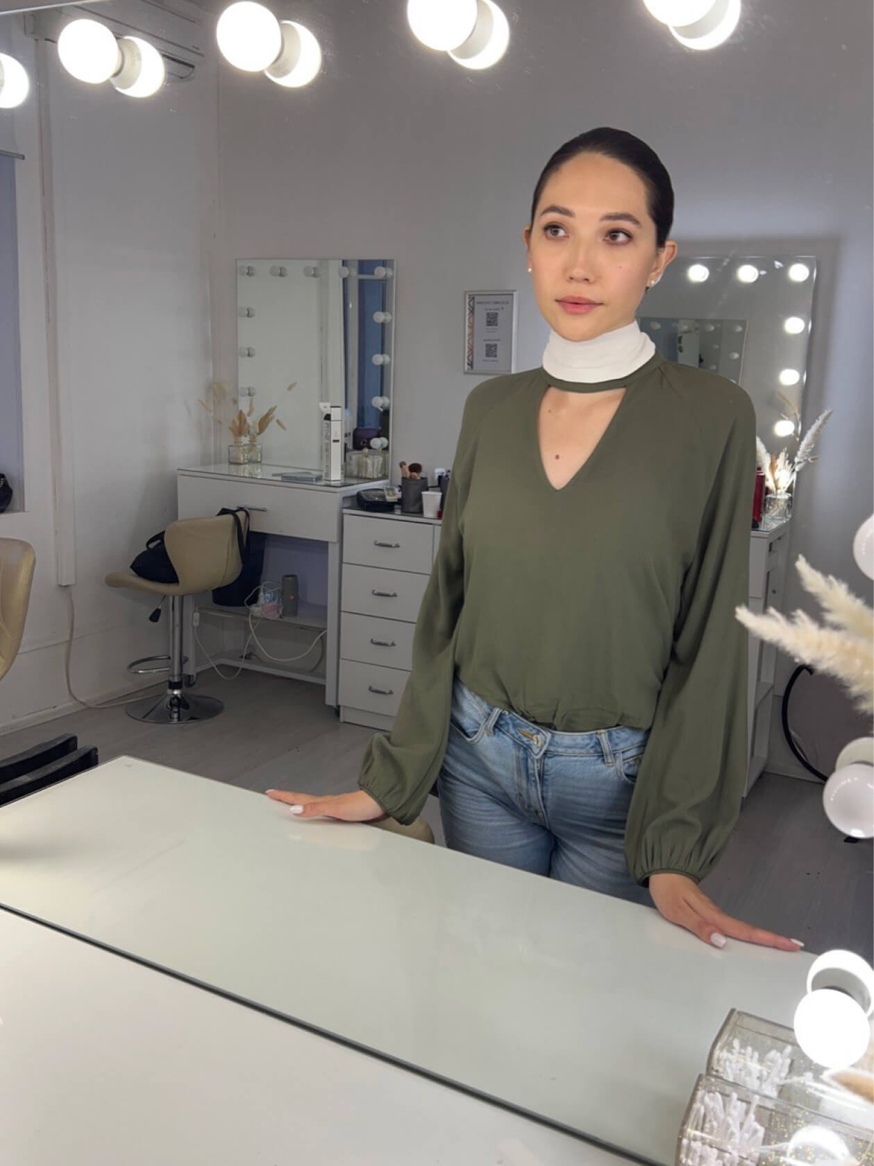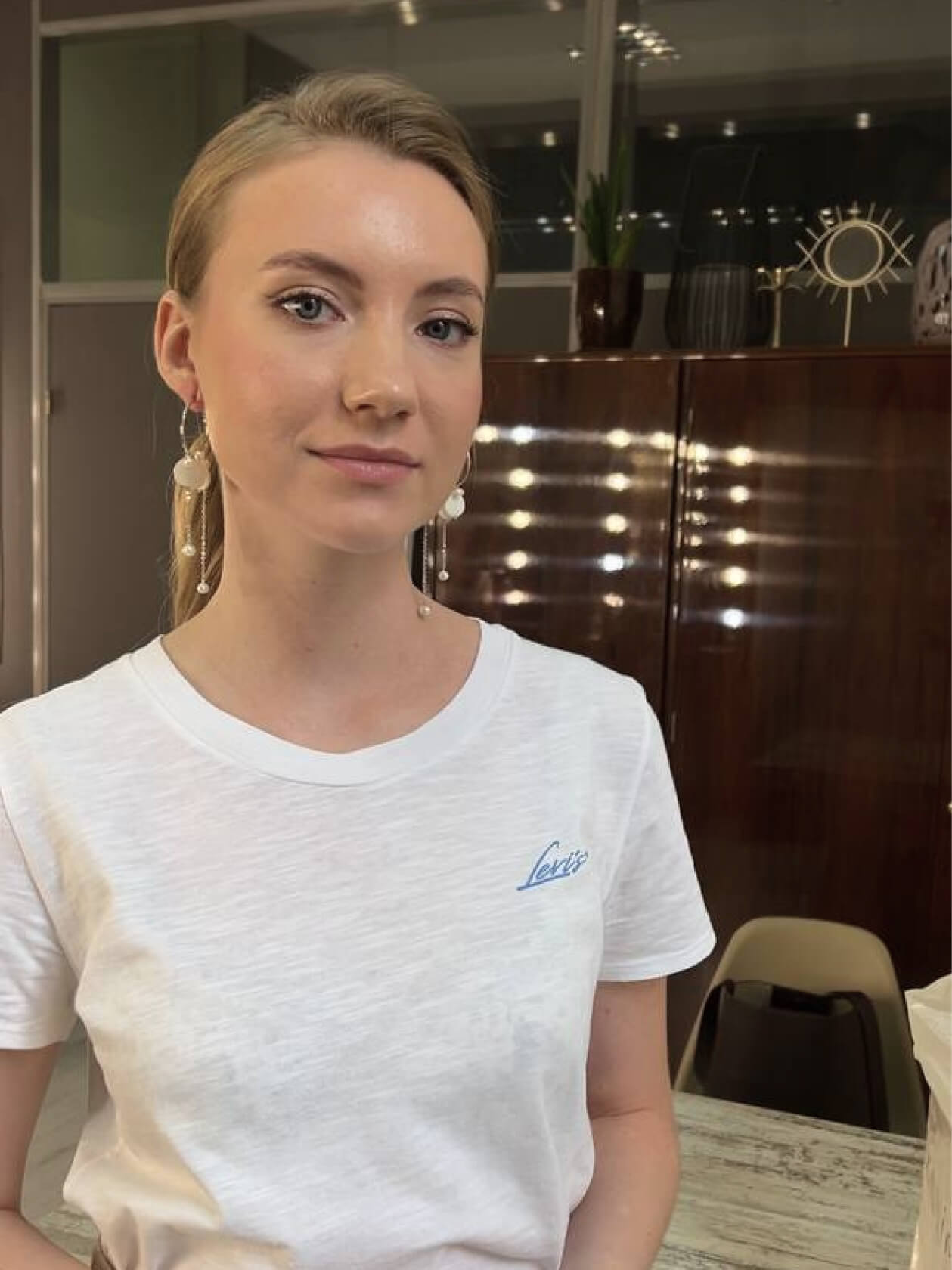 Оля сразу знала, что хочет нюдовый макияж со стрелочкой, чтобы получился лисий взгляд.